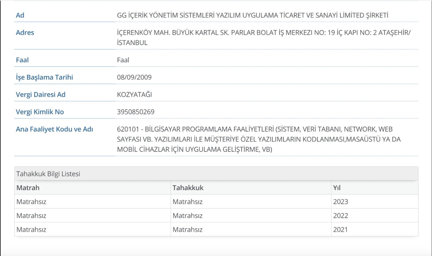 Emre Erçiş'in paylaşımlarında Tolga Eşiz’e ait GG İçerik Yönetim Sistemleri Yazılım Uygulama Ticaret ve Sanayi Limited Şirketi'nin 2021, 2022 ve 2023 yıllarında hiç vergi vermediği görülmüştü.